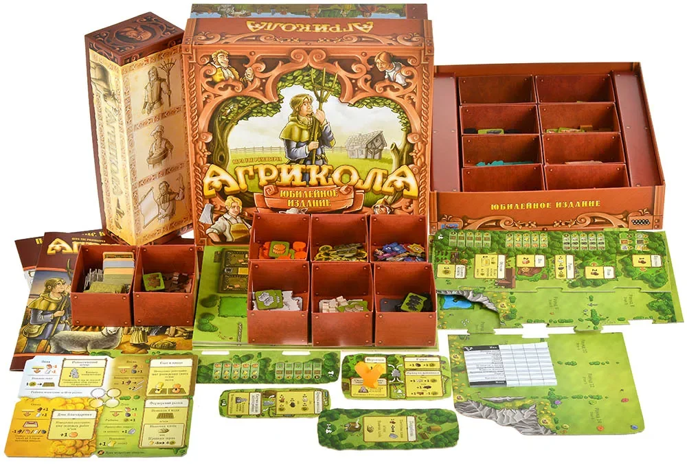 По ощущениям «Агрикола. Юбилейное издание» остаётся той же классической «Агриколой», но с максимально широким диапазоном колод и настроек. Вы можете играть на «базовых» колодах для более семейного и спокойного опыта или включать дополнительные наборы карт и модулей, усиливая тактическую глубину и непривычные комбинации. Благодаря этому коробка хорошо работает и как первый заход в мир «Агриколы», и как «максимальная» версия для давних поклонников, которые хотят иметь почти всё, что выходило для игры, в одном оформленном решении.