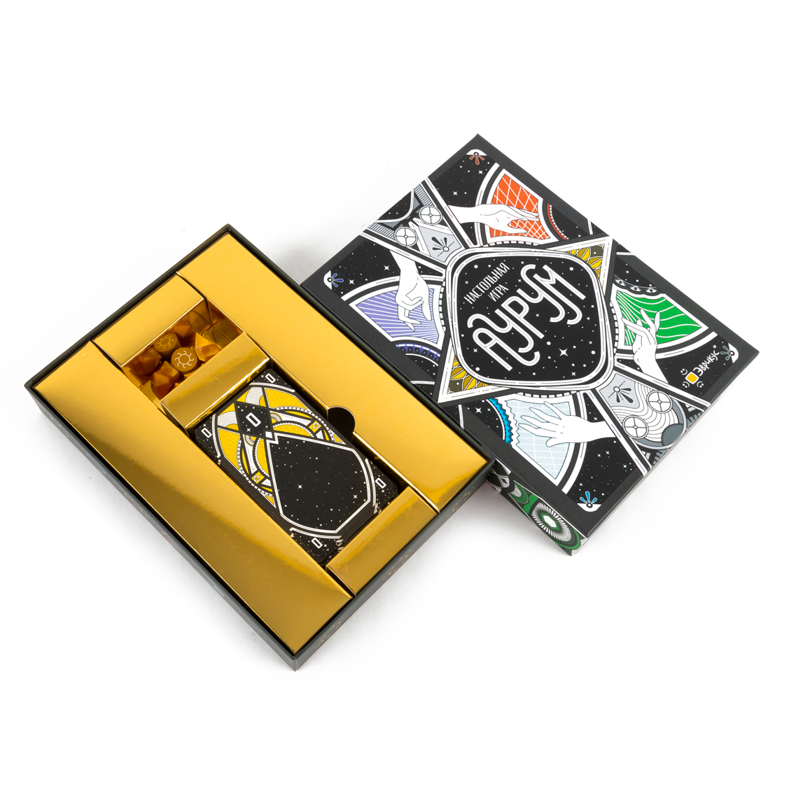 Издатель указывает возрастное ограничение «от 14 лет» и длительность партии около 30 минут. Несмотря на компактные правила, «Аурум» предлагает заметную глубину: нужно учитывать запрет повторять металлы, планировать использование золота, рассчитывать вероятность нужных вам номиналов и одновременно помнить о ставке, сделанной в начале раунда. Это делает игру привлекательной как для любителей классических игр на взятки, так и для тех, кто ищет необычный, тематичный вариант с атмосферой алхимических экспериментов.