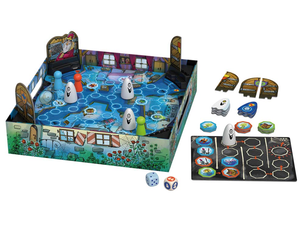 • Бросайте два кубика — голубой для движения магов, кубик призраков для вращения колеса