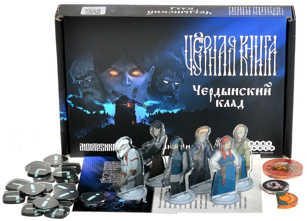 «Чёрная книга: Чердынский клад» – дополнение к атмосфереcкой кооперативной кампании «Чёрная книга», действие которой разворачивается в Чердынском уезде конца XIX века. Базовая игра уже знакомит вас с ролью знатких – колдунов, владеющих силой Чёрной книги, а это расширение углубляет их связь с нечистью и делает оформление партии более «премиальным» за счёт акриловых компонентов.