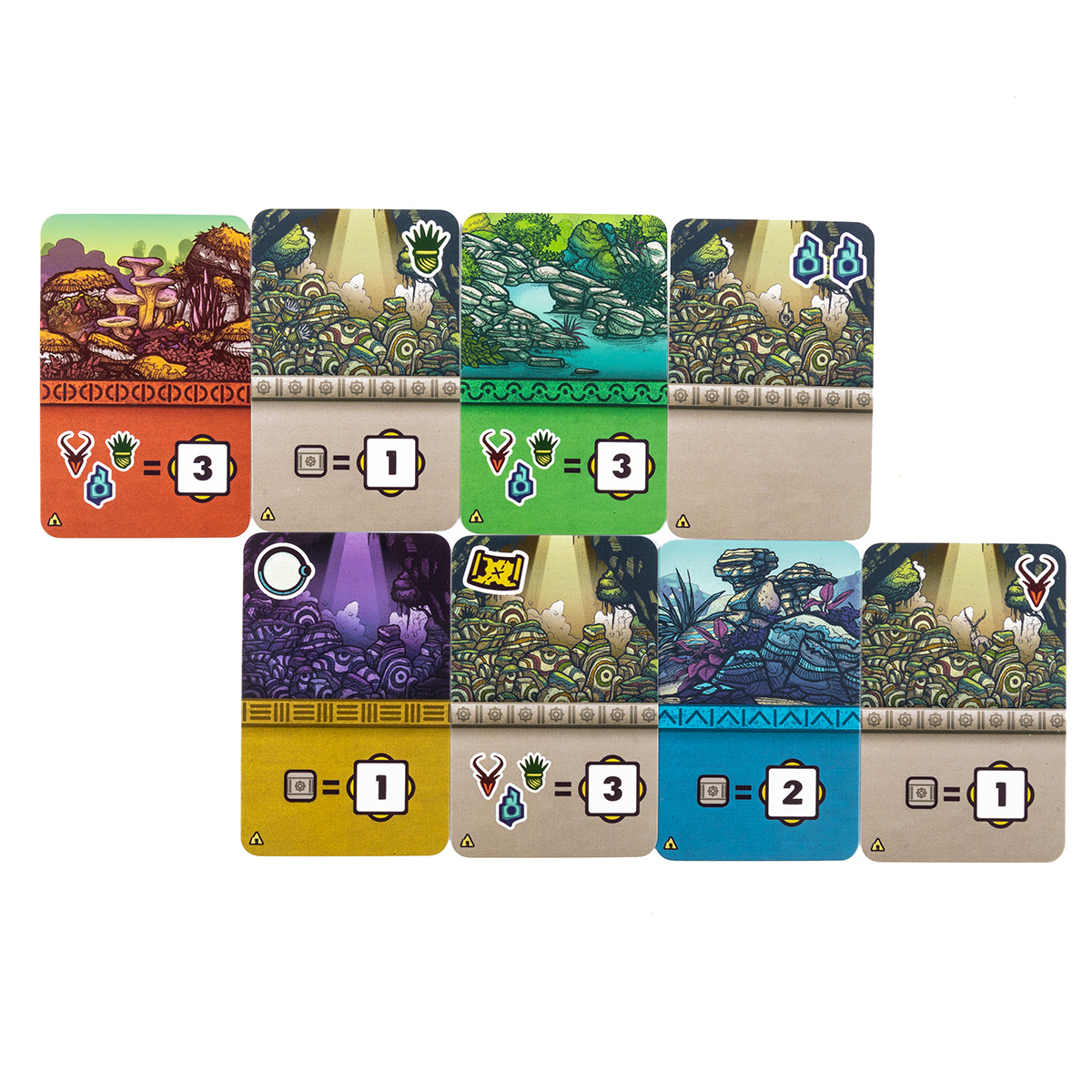 Дополнение усиливает и роль карточек святилищ. В базовой игре святилища уже давали бонусы и дополнительные возможности для набора очков, а «Антиподы» добавляют новые варианты таких карт. Святилища могут давать мгновенные преимущества, влиять на условия заданий или приносить очки при выполнении определённых комбинаций символов и регионов. Это добавляет гибкости при построении своей цепочки и делает каждое решение об открытии святилища более значимым.