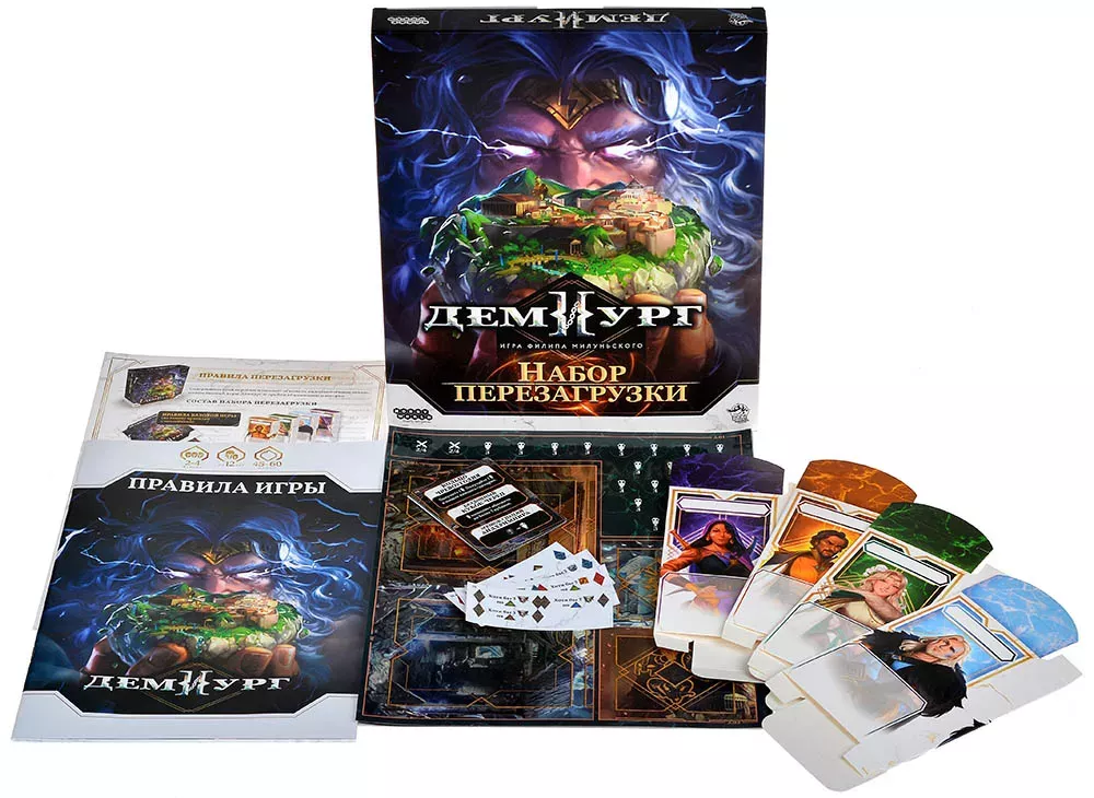 В «Демиурге» игроки выступают в роли полубогов, наблюдающих и вмешивающихся в схватку двух великих пантеонов — древнегреческого и скандинавского. По мере прохождения кампании базовая игра меняется: вы наклеиваете стикеры, открываете новые элементы, принимаете судьбоносные решения, и ваш экземпляр «Демиурга» превращается в уникальную историю. После финального сценария многие компоненты уже не вернуться к изначальному состоянию — именно поэтому и существует «Набор перезагрузки».