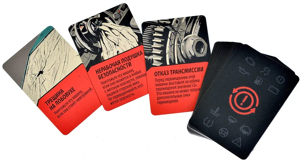 Отдельным слоем усложнения выступают 21 карта продолжительных эффектов. Если многие события в гонке раньше носили разовый характер — произошёл бросок кубика, случилось столкновение, и всё — то с этим дополнением на трассе появляются эффекты, которые действуют не один ход. Такие карты могут задавать долгосрочные изменения условий, усиливать угрозы определённых участков или создавать фоновую напряжённость, с которой нужно считаться постоянно. Продолжительные эффекты добавляют в игру стратегический элемент: важно не только пережить текущий момент, но и правильно спланировать свои действия с учётом того, как долго продлятся новые правила.​