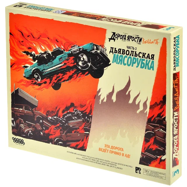«Дорога ярости: Вендетта. Дьявольская мясорубка» — дополнение к постапокалиптической гонке «Дорога ярости: Вендетта», которое делает трассу ещё более жестокой, непредсказуемой и смертельно опасной. Если в базовой игре участникам уже приходилось лавировать между столкновениями, перестрелками и опасными манёврами, то с этим набором сама дорога превращается в главный источник угроз. Теперь дело действительно «пахнет жареным»: новые участки полотна, дьявольские опасности и огонь заставляют пересмотреть привычные тактики и готовят гонщикам настоящую мясорубку.​