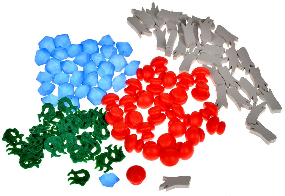 - Блестящие сокровища: Реалистичные ресурсы и перламутровые ракушки, заменяющие жетоны победных очков из базовой игры, которые приятно держать в руках и которые станут гордостью вашей коллекции.