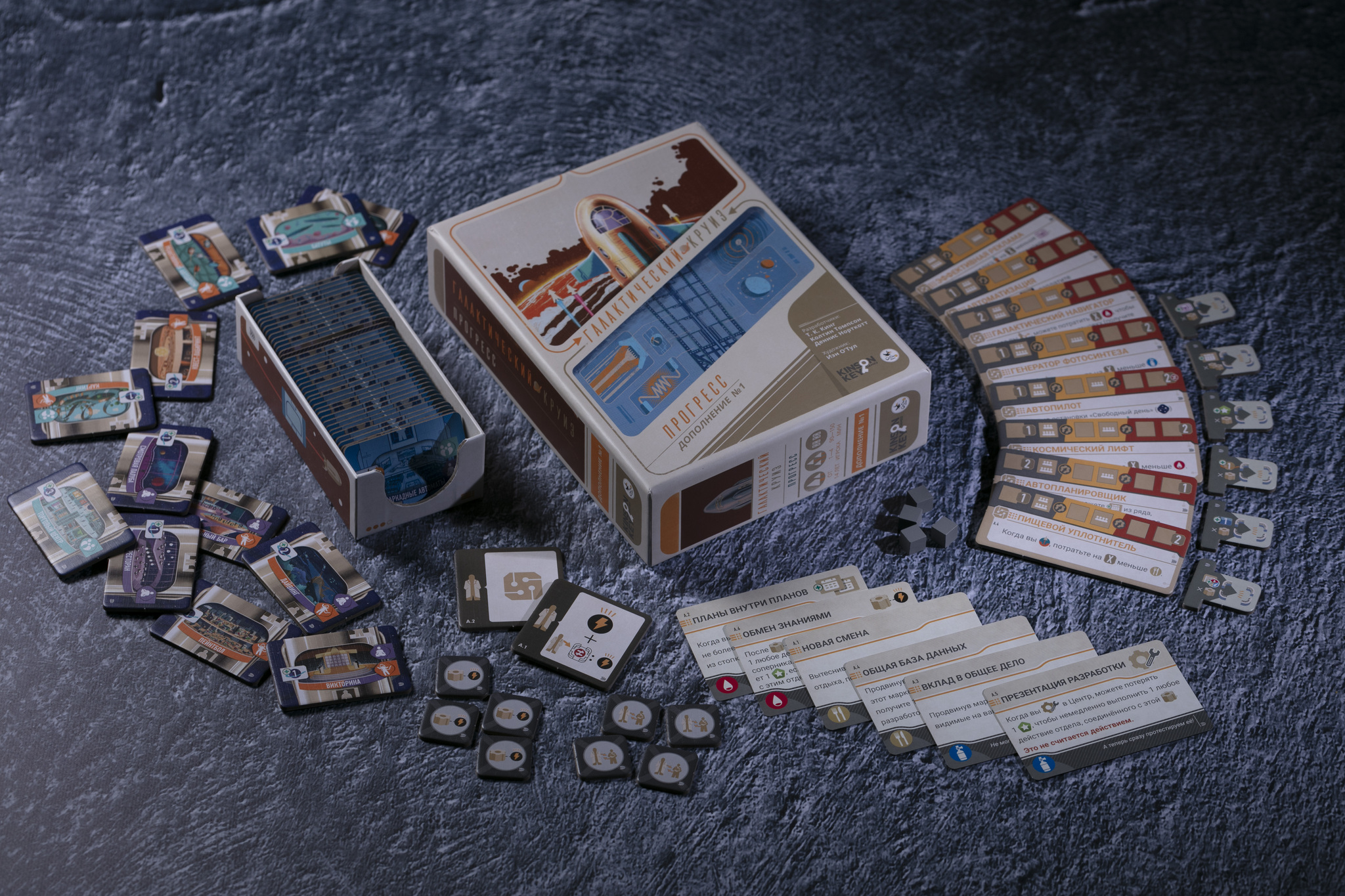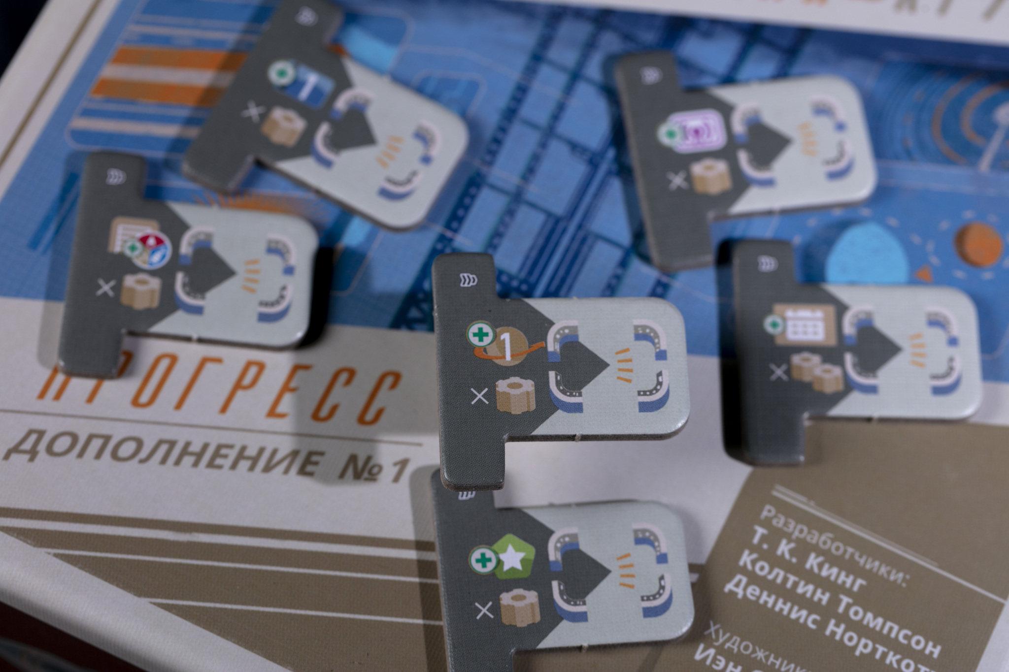 Дополнение «Прогресс» включает три модуля, которые подключаются к базовой игре по отдельности или в комбинациях с модулями из «Комфорт». Несовместимы только «Идеальные чертежи» и «Совмещение кают», поскольку оба заменяют стандартные чертежи.