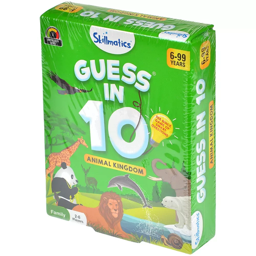 Guess in 10: Animal Kingdom — познавательная карточная игра‑викторина для маленьких исследователей и любознательных взрослых, которая знакомит с миром животных и помогает практиковать английский язык. Игроки загадывают животных и пытаются угадать их максимум за десять вопросов, на которые можно ответить только «yes» или «no». Формат прост, но затягивает: вы выбираете карту, задаёте наводящие вопросы и шаг за шагом сужаете круг вариантов, пока не находите верный ответ.