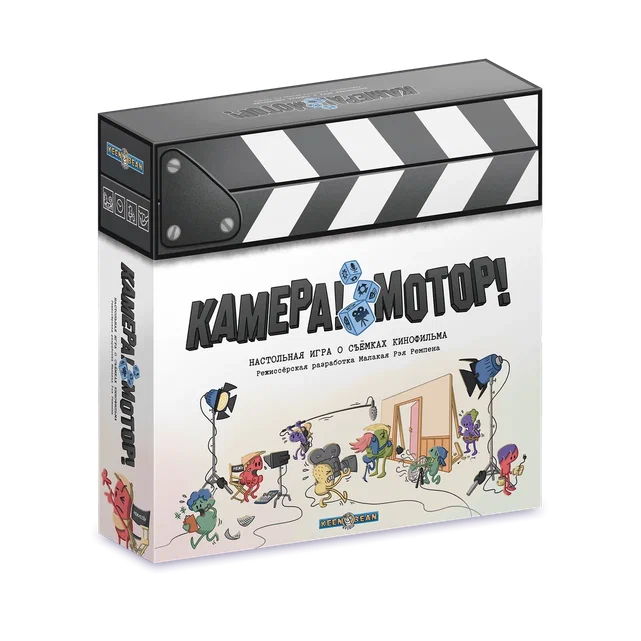 «Камера! Мотор!» – кооперативная настольная игра, в которой вы с друзьями становитесь съёмочной группой маленькой киностудии, балансирующей на грани банкротства. В ваших руках сценарий, набор идей и ограниченный бюджет, а впереди – череда съёмочных дней, заполненных дедлайнами, капризами актёров и неожиданными форс‑мажорами. Цель проста и сложна одновременно: успеть снять и смонтировать полноценный фильм, пока не закончились деньги, время и терпение продюсеров.​​
