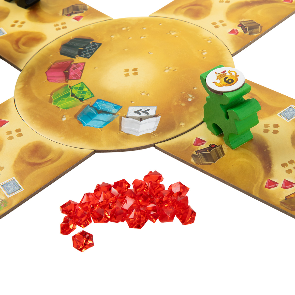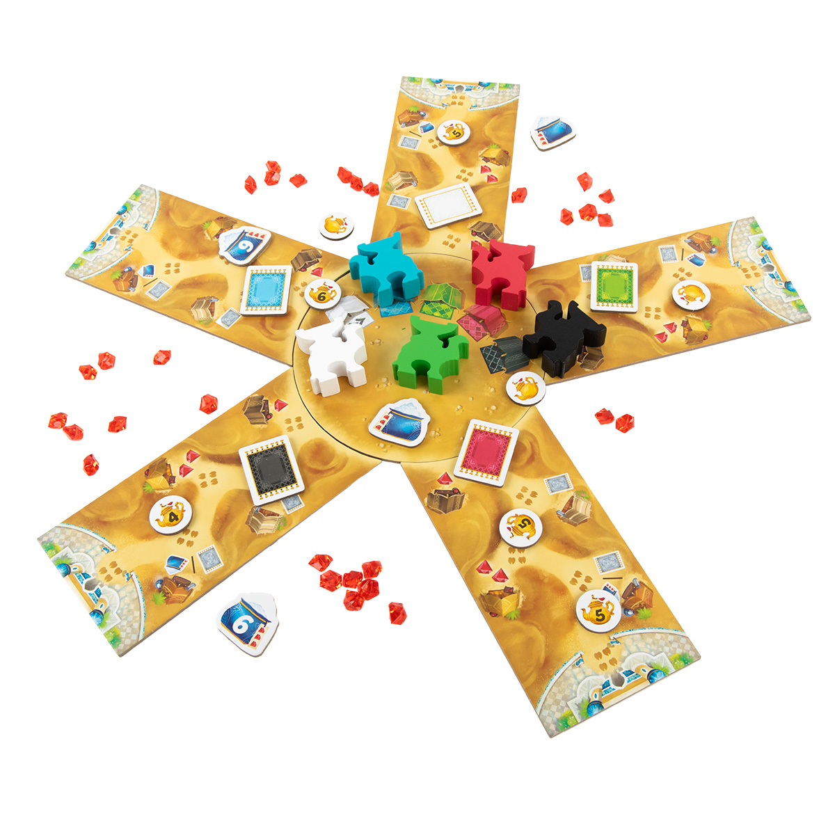 По пути к торговым постам верблюды проходят мимо лавок, и именно здесь торговцы могут пополнить запасы ценных товаров. Остановка у лавки позволяет получить драгоценные камни, ковры или обменять камни на соль, что приносит дополнительные очки. Когда верблюд добирается до торгового поста игрока, владелец берет жетон чая со спины верблюда и может переложить ковры соответствующего цвета на свой планшет, чтобы усилить итоговый подсчёт очков. В конце игры учитываются собранные жетоны чая и ковров, купленная соль и оставшиеся драгоценные камни – побеждает самый состоятельный торговец.