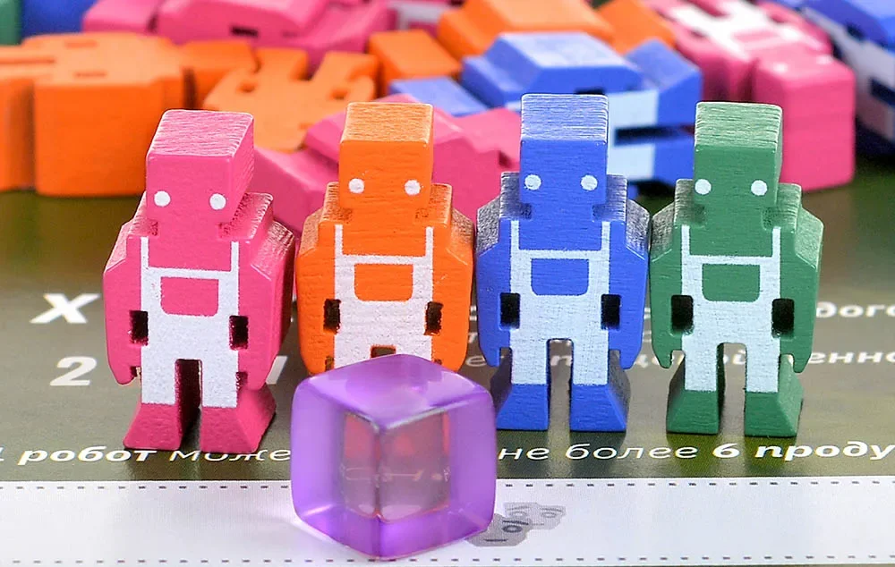 Роботы – 28 шт.: рабочие, которых игроки отправляют в поля и цеха для выполнения действий.