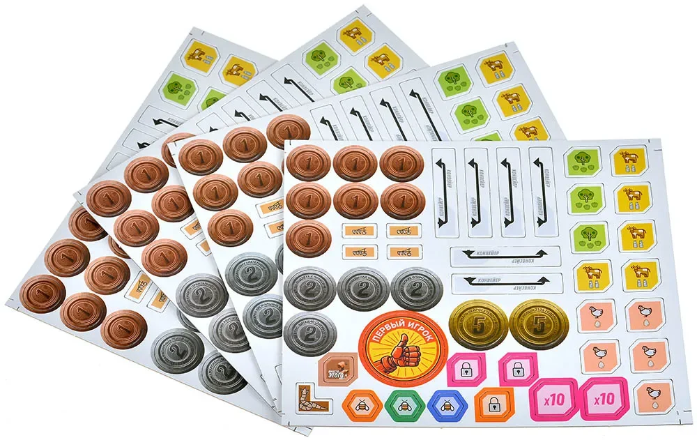 Жетоны конвейеров – 24 шт.: отмечают связи между зданиями и активируемые производственные линии.
