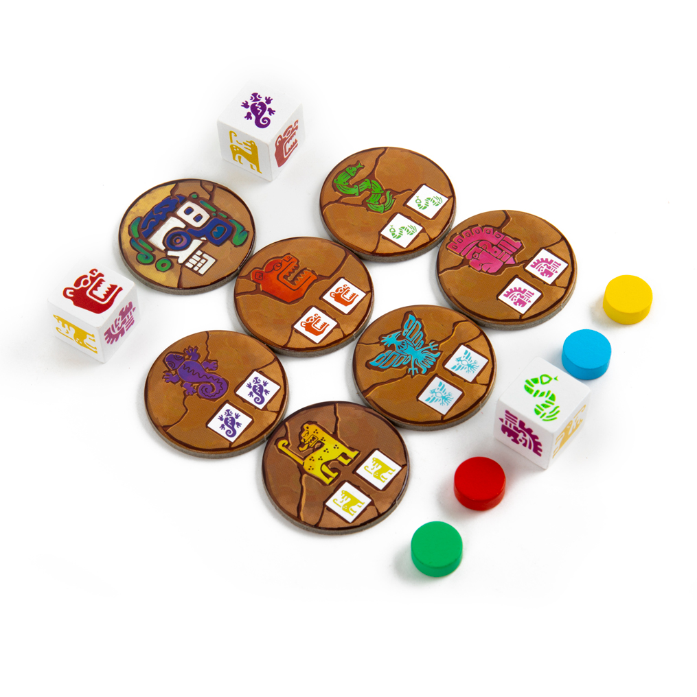 В игре нет классической колоды карт; главные компоненты – жетоны и диски.