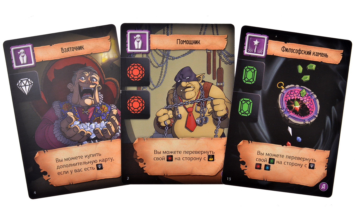 Каждый ход на столе будет появляться добыча в виде драгоценных камней разного цвета, мешков с золотом и других предметов. Можно запросто взять этого добра себе сколько хочется, но не стоит забывать, что следующие игроки в свой ход будут выбирать как из того, что есть на столе, так и из вашей добычи. В этом-то и заключается искусство дележа – заполучить себе нужные именно вам вещи, но таким образом, чтобы привлекательной казалась чужая добыча, а не ваша.