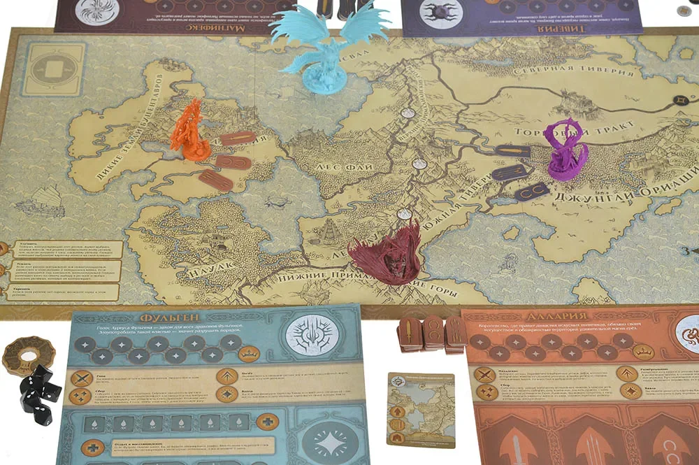 Интересно, что игра не ограничивается простым противостоянием «люди против драконов». В зависимости от ситуации участники могут временно объединяться против слишком разогнавшегося соперника, а иногда даже генерал и дракон становятся союзниками, заключая ту самую «связь драконов» (Dragonbond). Такая связь наделяет обоих дополнительной силой и может резко изменить баланс сил на поле: вчерашние враги вместе сметают третьего игрока, а потом готовятся предать друг друга в борьбе за окончательную победу. Полукооперативный элемент добавляет за столом переговоры, блеф и интригу, напоминающую дипломатические игры, но в более компактном формате.