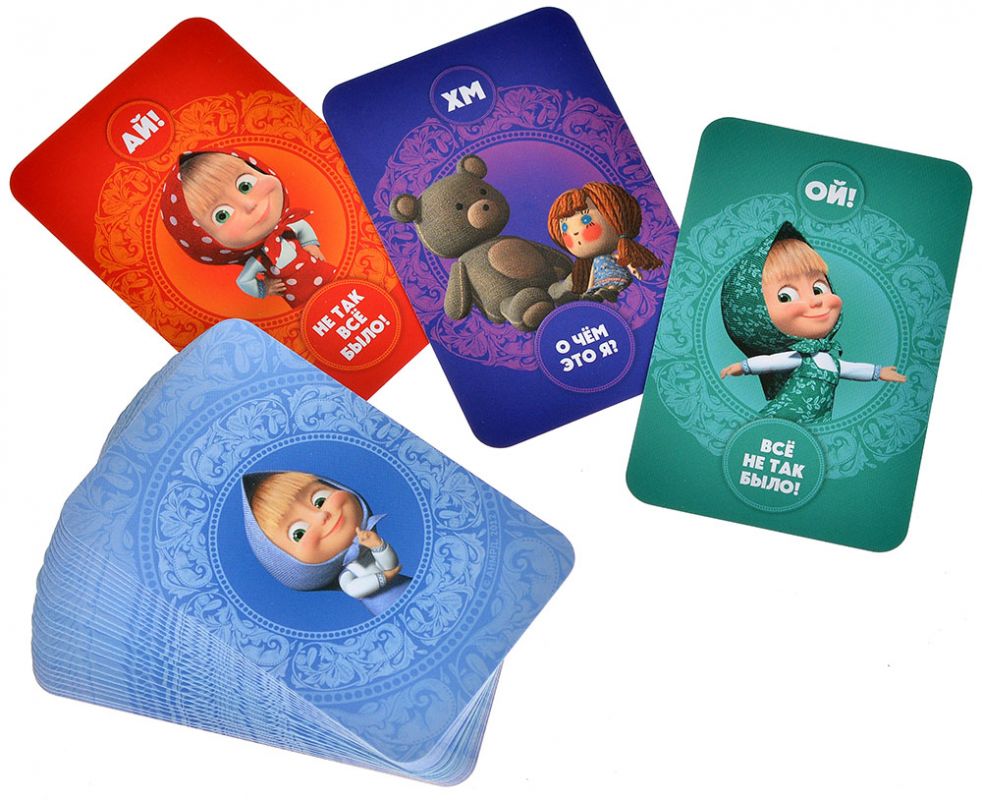 «Маша и Медведь: Машины сказки» – развивающая настольная карточная игра по мотивам популярного мультсериала, в которой дети вместе с Машей придумывают собственные сказочные истории. По сказкам в голове у Маши случилась небольшая путаница, и теперь персонажи и сюжеты переплелись так, что без помощи игроков порядок не восстановить – зато можно сочинить новые, ещё более забавные сказки.