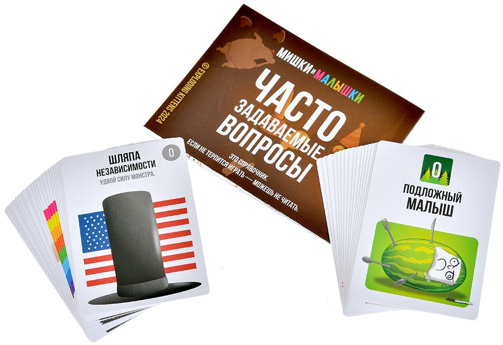 - Взрывной юмор — карты с ироничными описаниями и смешными иллюстрациями;