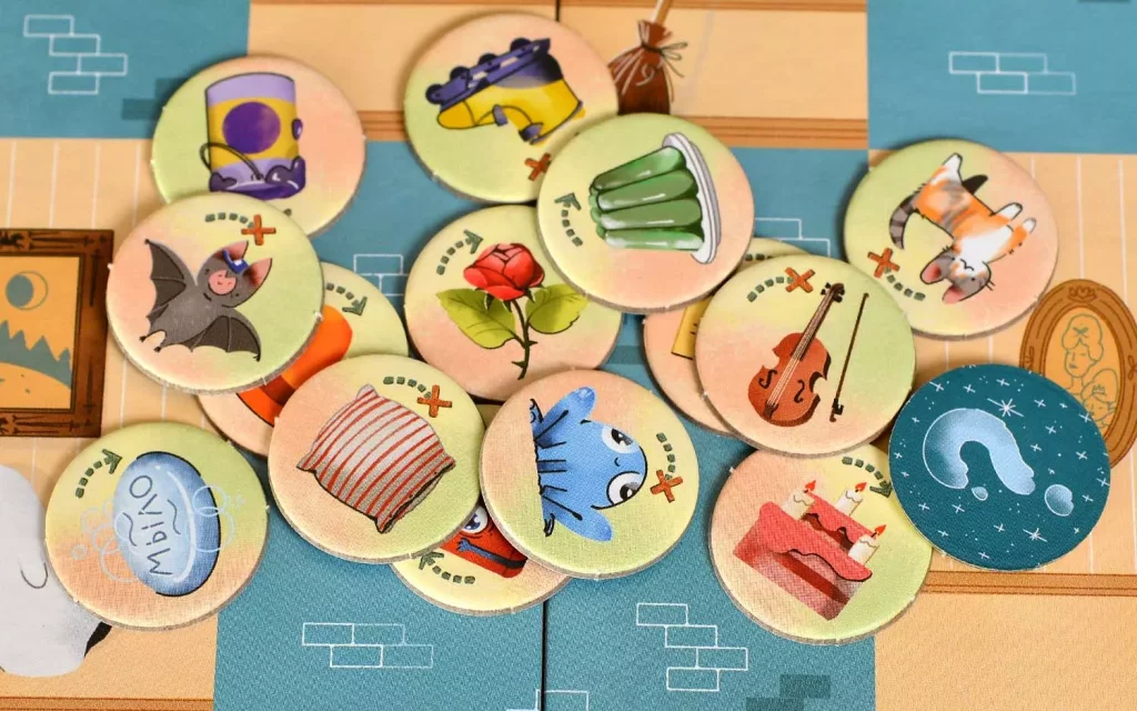 Ключевая механика игры — движение от точки к точке по полю, которое изображает этажи магического дома. Монстрики перемещаются по комнатам, подбирают волшебные предметы и относят их туда, где им положено лежать, а параллельно следят за изменениями планировки и ограничениями по ходам. Простое правило «собери предмет и донеси до нужной комнаты» легко объяснить ребёнку, но меняющийся дом и ограниченное время добавляют напряжения и заставляют игроков планировать маршрут вместе.