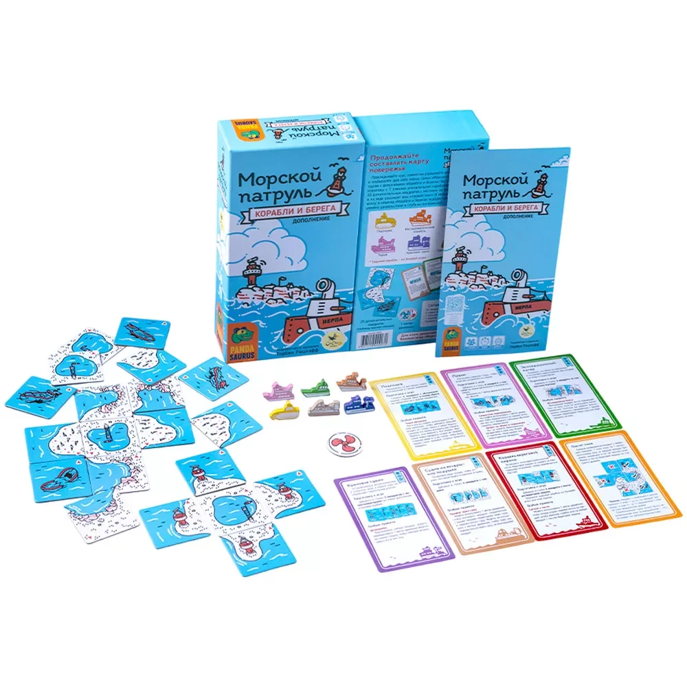 «Морской патруль. Корабли и берега» — дополнение к кооперативной игре «Морской патруль» (Beacon Patrol), которое делает знакомое патрулирование побережья Северного моря ещё более тактическим и разнообразным. Если базовая игра уже понравилась за спокойное совместное строительство карты и простые правила, этот набор добавит новые роли, особенности маршрутов и неожиданные способы набора очков.