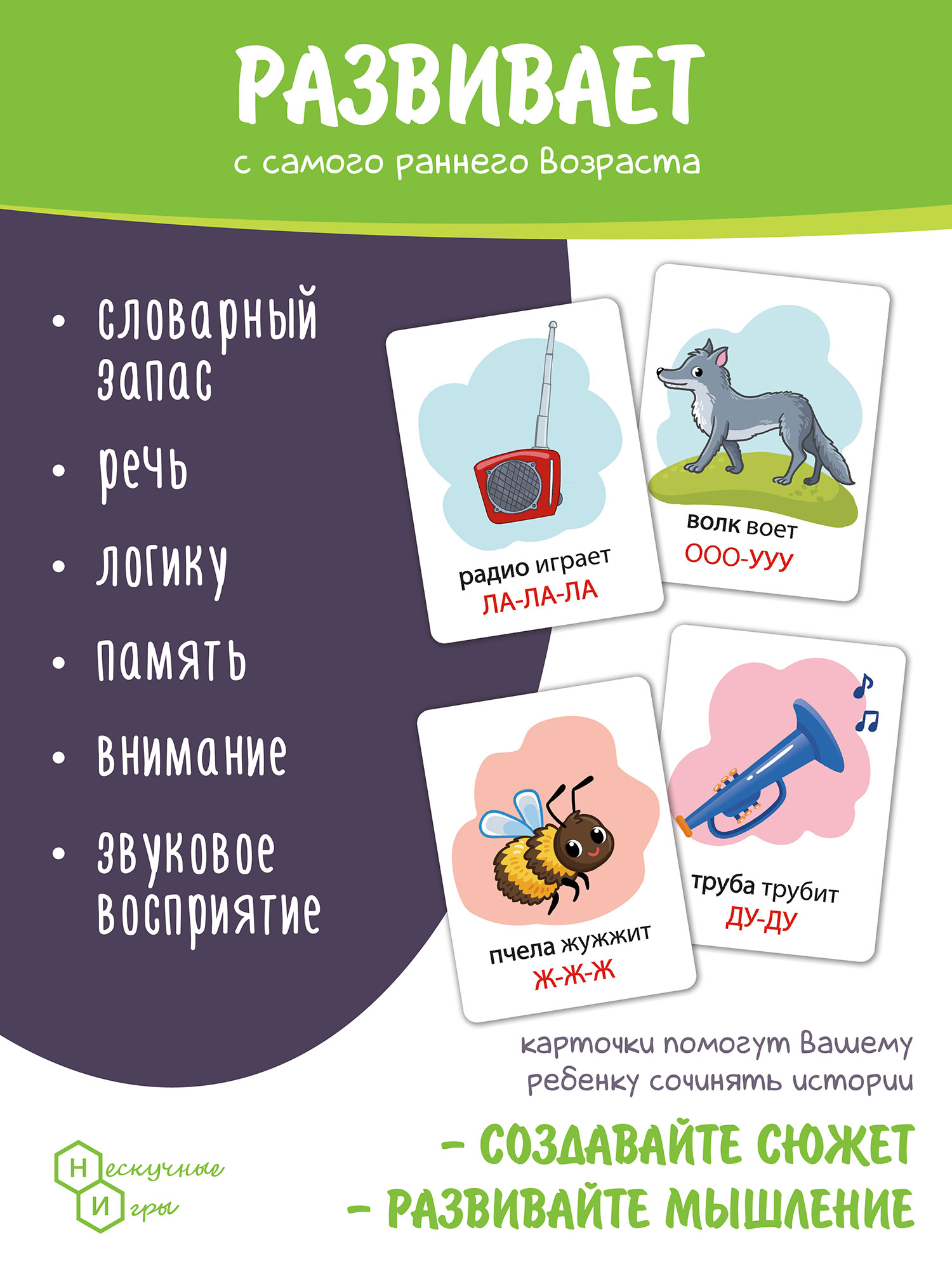 Вместе малышом возьмите несколько карточек и придумайте небольшую историю, как они могли бы взаимодействовать в жизни.