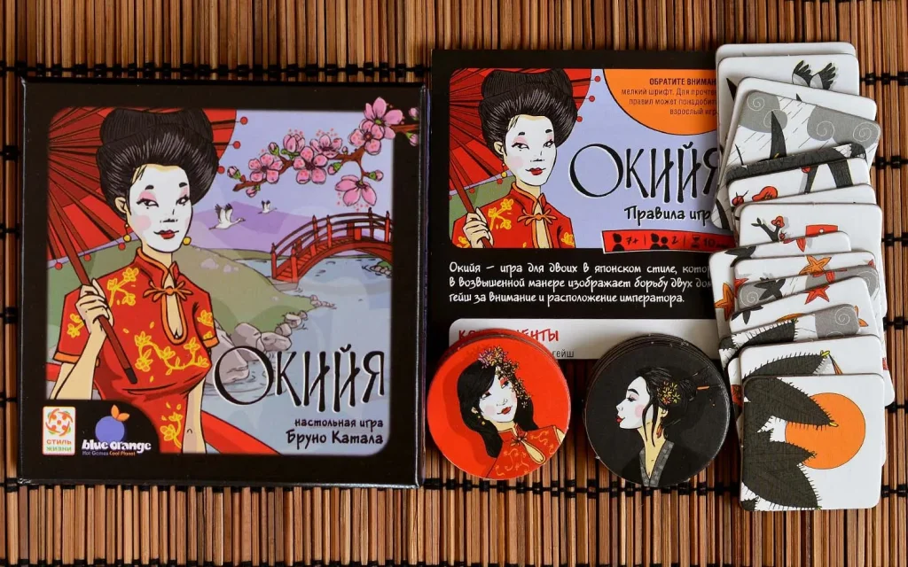 Игра идеально подходит для формата «родитель – ребёнок» или быстрой дуэли взрослых. Простые правила легко объяснить за пару минут, а партия занимает 5–10 минут, поэтому можно сыграть матч до трёх побед или организовать серию из нескольких игр. Компактная картонная коробка делает «Окийю» удобной дорожной игрой: внутри всего несколько жетонов и плиток, не требующих большого стола.