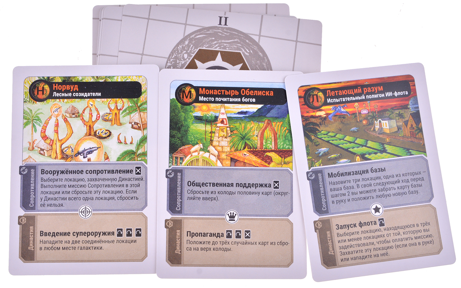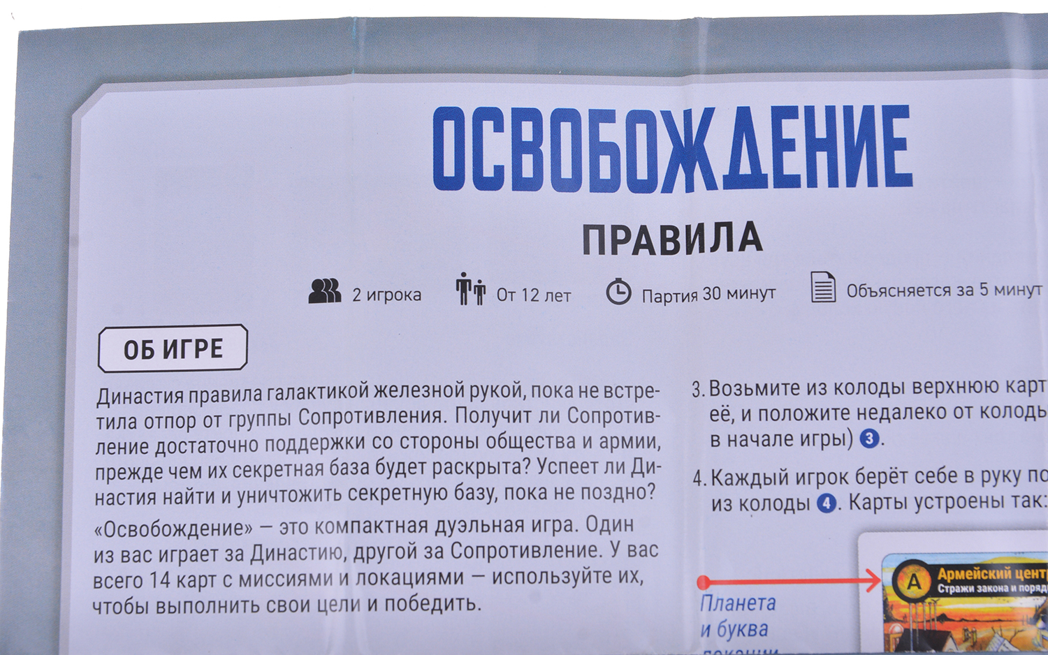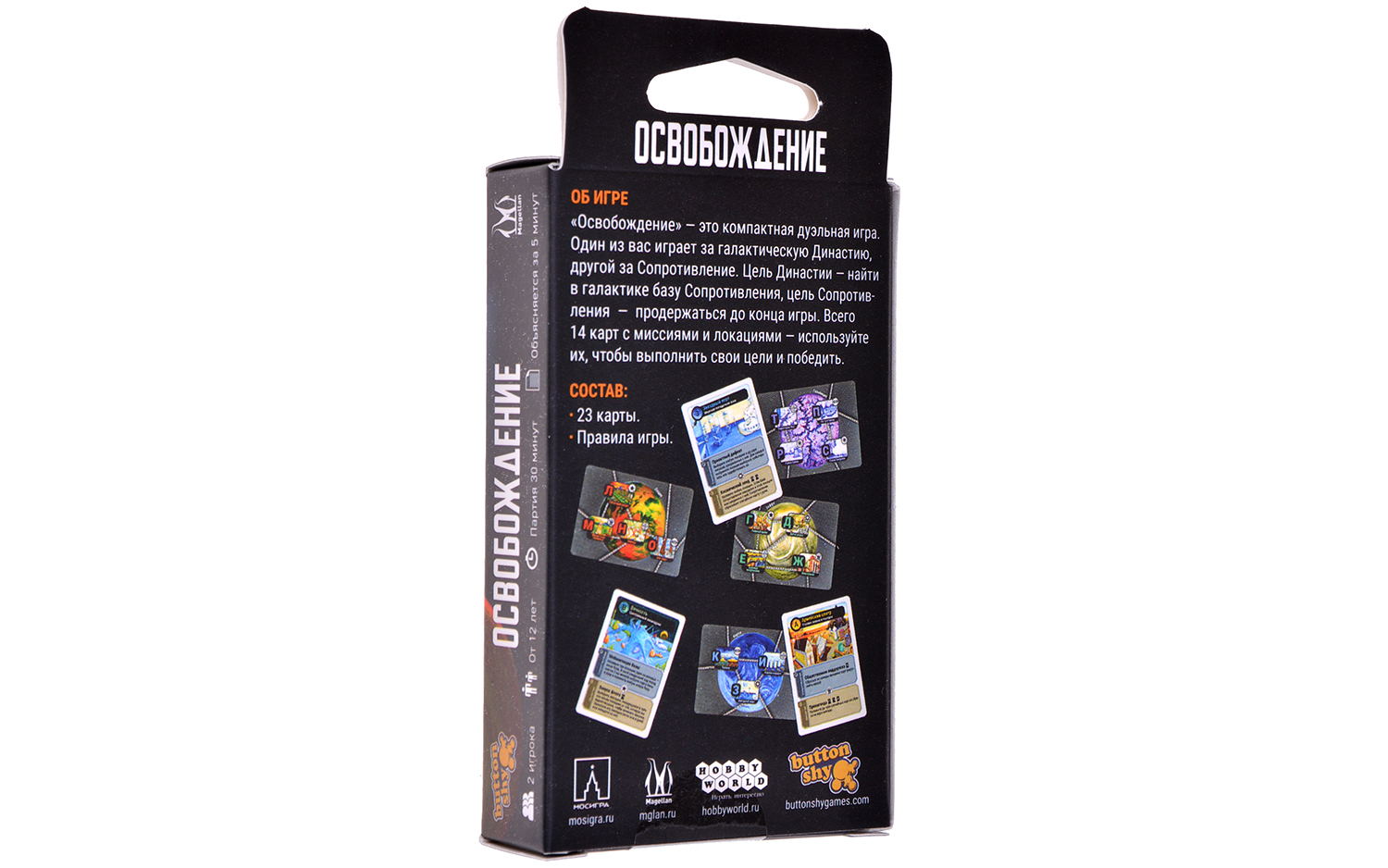 "Освобождение" – это невероятно компактная карточная игра, которая позволяет двум игрокам разыграть галактическое восстание и его подавление, используя колоду всего из 18 карт (а с дополнением, которое лежит в коробке, из 23).