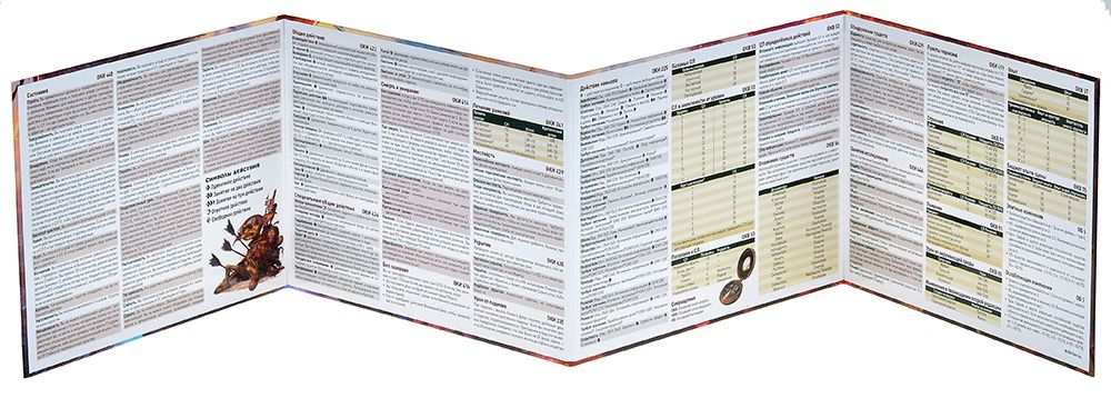 Ширма содержит всё необходимое для игры: статусы персонажей, описание действий, уровни сложности, модификаторы для монстров и другие важные механики. Изготовленная из прочного ламинированного картона, она выдержит частые перевозки и подойдёт как для домашних сессий, так и для мероприятий. С ней ваши игры станут организованными, динамичными и атмосферными!