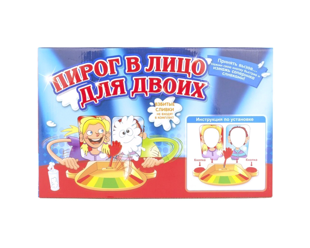 Пирог в лицо на двоих это новая игрушка для всей семьи, которая непременно подарит радость, хоть это и игра на двоих, но смешно будет всей семье.