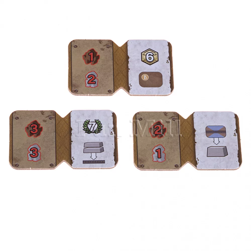 Жетоны рабочих посёлков — стартовые точки, которые мостами соединяют с областями действий, формируя сеть логистики.