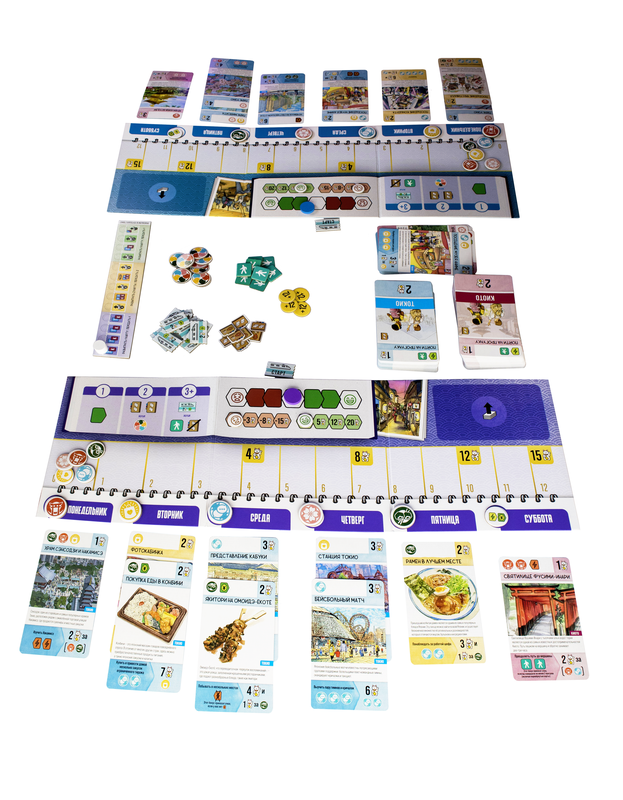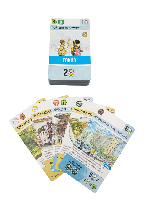 Несмотря на семейный формат, «Поехали! В Японию» предлагает немало тактики. Вы постоянно выбираете между «схватить» карту, идеально подходящую под ваши личные цели, и более универсальными событиями, которые помогут сгладить усталость или закрыть пробелы в плане. При этом ходы проходят одновременно: игроки параллельно распределяют карты по своим неделям, чего позволяет играть без долгих ожиданий и делает партию динамичной даже в полном составе.