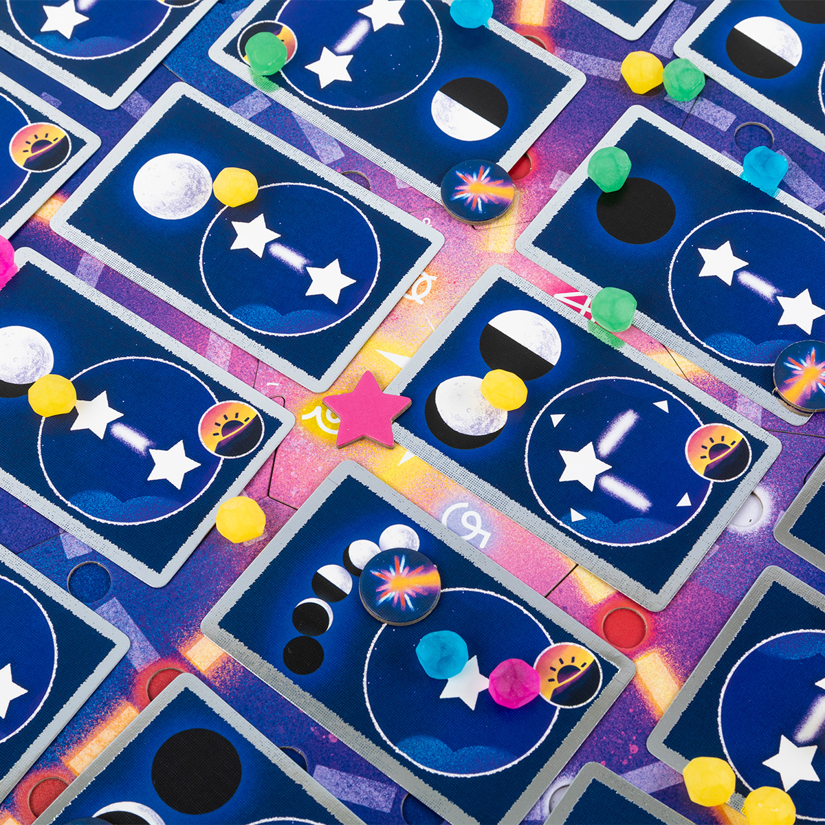 Размещая звёзды, важно учитывать фазу Луны, активную в текущем раунде. Именно она показывает, в каких областях звёздного неба вам разрешено выкладывать новые фишки. Звёзды можно ставить как в белые ячейки внутри сектора, так и на красные точки на границах секторов: такие позиции гибче, но за них приходится платить жетонами падающих звёзд. Линии созвездий соединяют отдельные звёзды и часто становятся ключевым элементом для выполнения целей и набора очков.