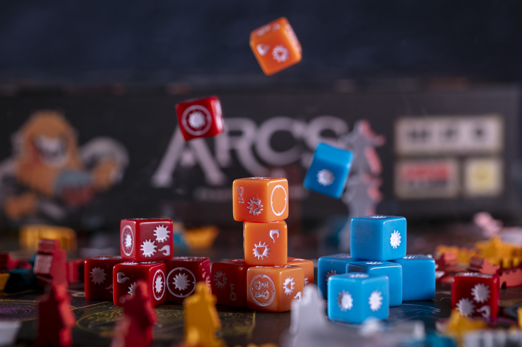 • 18 кубиков сражения (по 6 кубиков трёх цветов)