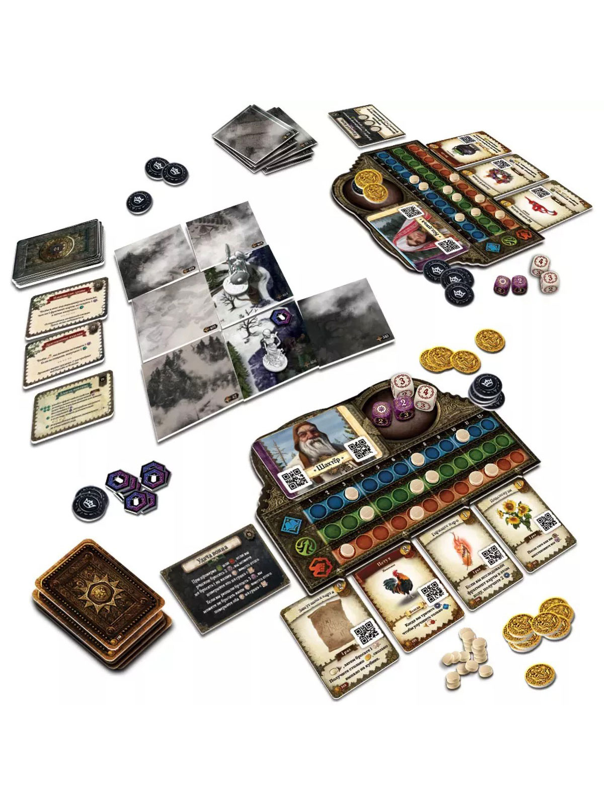 Жетоны судьбы (14 шт.) и передышки (14 шт.) – маркеры для модулей испытаний и пауз.