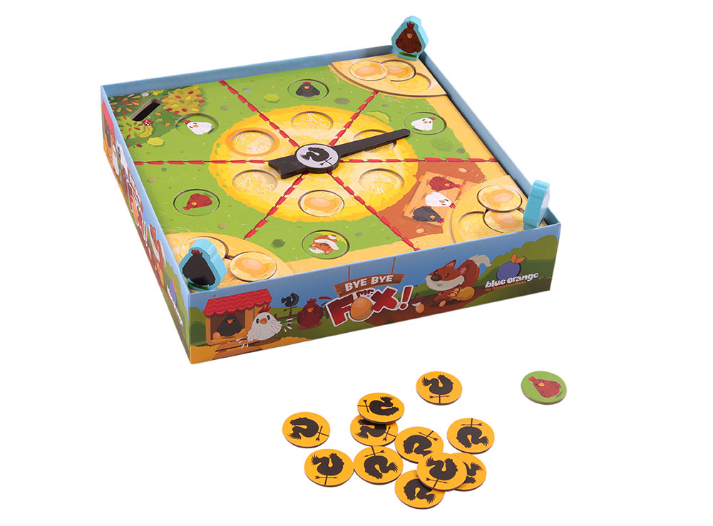 Толкай стрелку флюгера так, что бы она сделала хотя бы один полный оборот. Проверяй куда указывает стрелка: это может быть либо пустая ячейка, либо ячейка с жетоном яйца. Если в ячейке лежит жетон яйца, проверьте, куда указывает кончик стрелки: на курочку; на вход в курятник; или на лисёнка...
