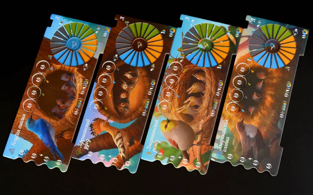 Механически «Птенцы» строятся на сочетании размещения кубиков, контроля территорий и сбора сетов. Важно не только занять место раньше соперника, но и просчитать, какие ресурсы реально достанутся вам после распределения, и как они впишутся в вашу долгосрочную стратегию. Здесь нет «пустых» ходов: любое решение – от выбора биома до распределения жетонов на планшете – влияет на то, сможете ли вы накормить выводок и закрыть важные цели раньше других.