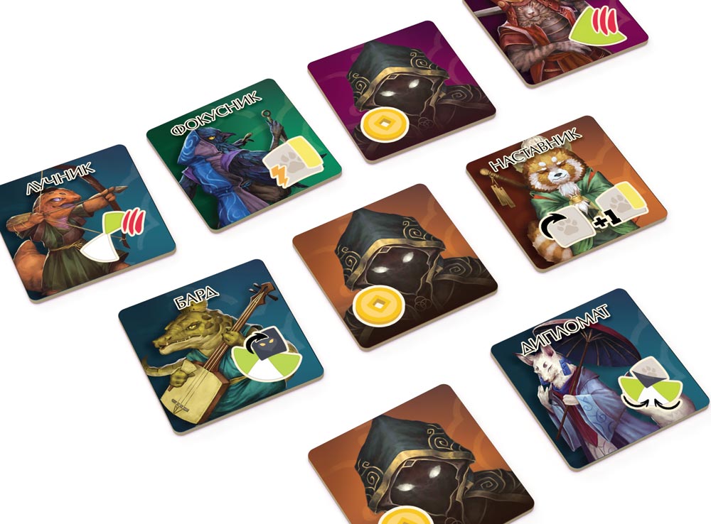 • 4 жетона Глашатаев, 4 Исследователей, 4 благосклонности