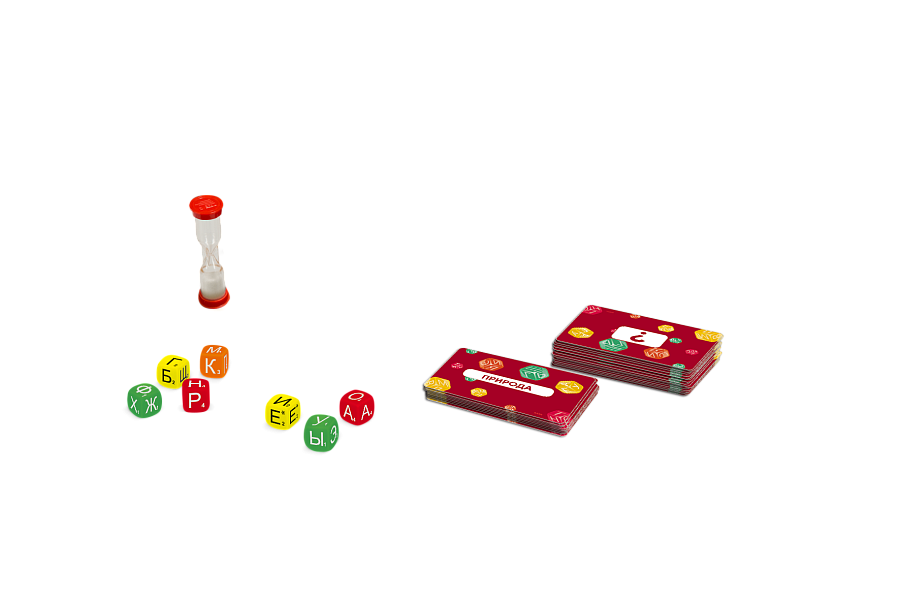 Игра «Слово за слово. Вечеринка» подойдёт и большой шумной компании, и любителям игр в слова, и для семейных посиделок! Берите карточку, выбирайте слово, бросайте два кубика и объясняйте слово, не произнося обе выпавшие буквы. Скучно точно никому не будет, ведь пока один пытается объясниться, остальным надо не только слово отгадать, но и следить, не допустил ли он ошибку. Получайте победные очки и веселитесь, отгадывая слова и ловя говорящего на промахах!
