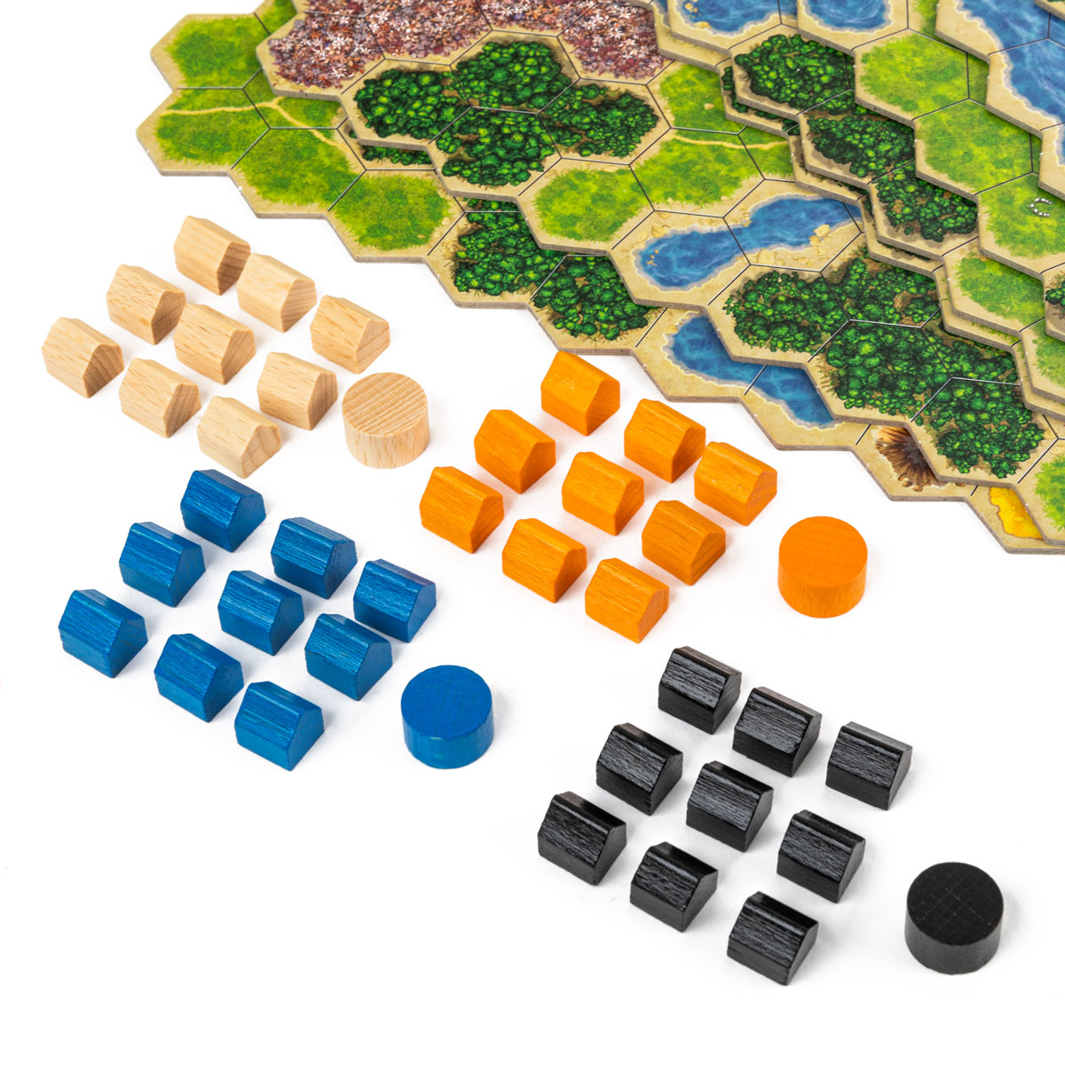 Деревянные фишки поселения – 160 шт. (по 40 каждого цвета на 4 игроков).
