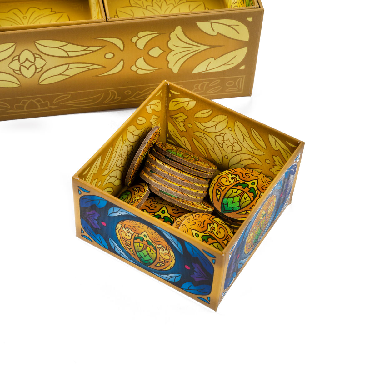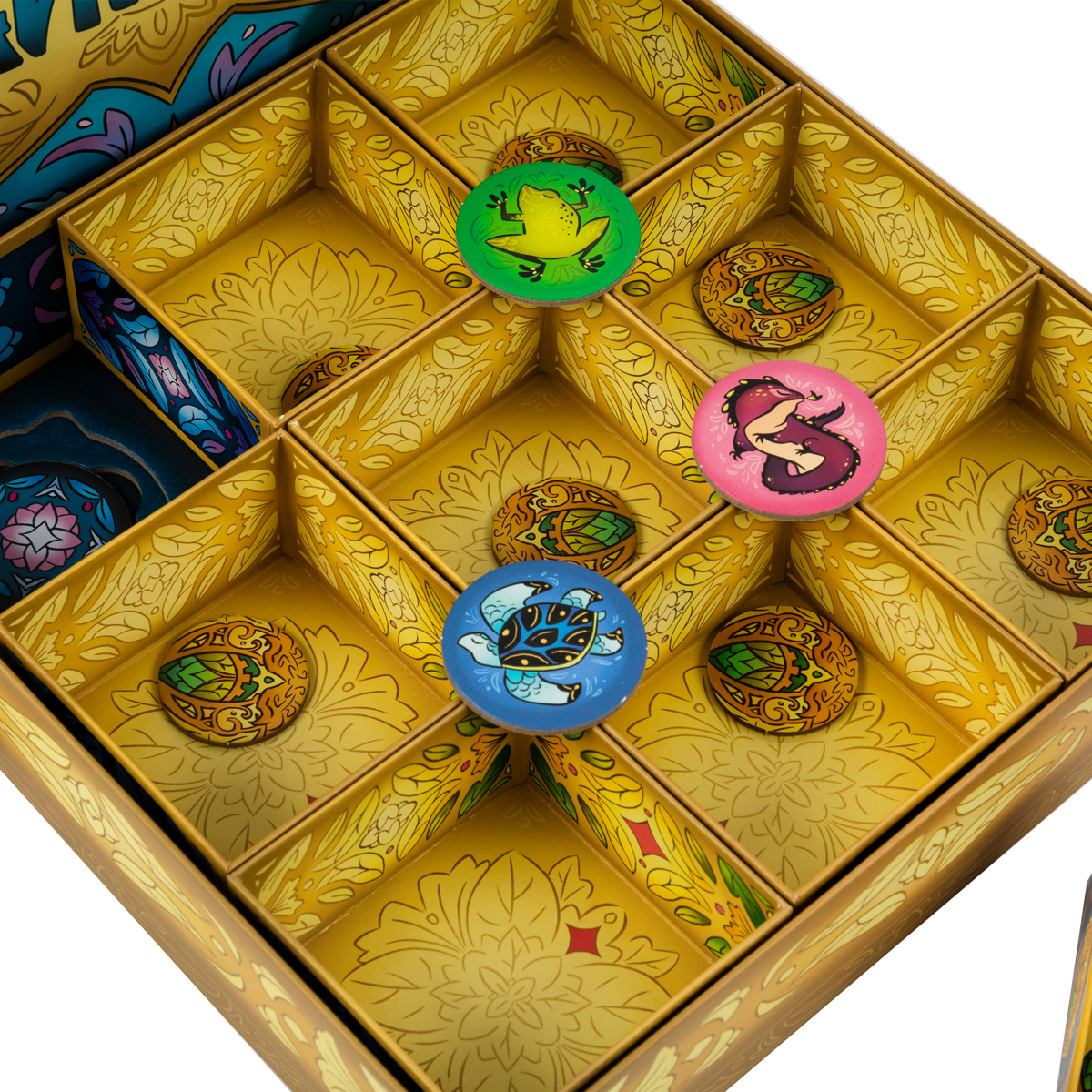 В начале партии вы выбираете уровень сложности, от которого зависит, какие жетоны тайников войдут в игру. Чем сложнее уровень, тем больше комбинаций нужно держать в голове и тем меньше пространства для ошибок. Затем игроки рассаживаются так, чтобы каждый сидел у своего угла шкатулки: это важно, потому что каждый видит только часть информации снаружи и внутри коробочек. Полная картина складывается только при обмене наблюдениями, что заставляет активно общаться и договариваться.