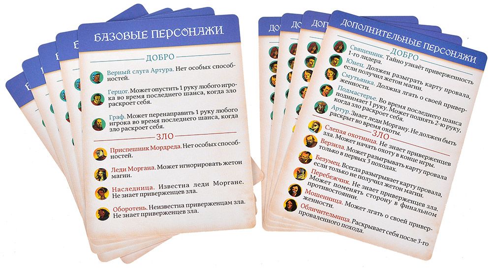 В начале партии каждый игрок получает карту персонажа и тайно становится либо верным соратником Артура, либо приспешником Мордреда. Добро стремится провести три успешных похода или разоблачить всех злодеев, а силам зла нужно затаиться и сорвать три миссии, не выдав себя в обсуждениях и голосовании. При этом отдельные роли обладают особыми возможностями, что влияет на стратегию обеих сторон.