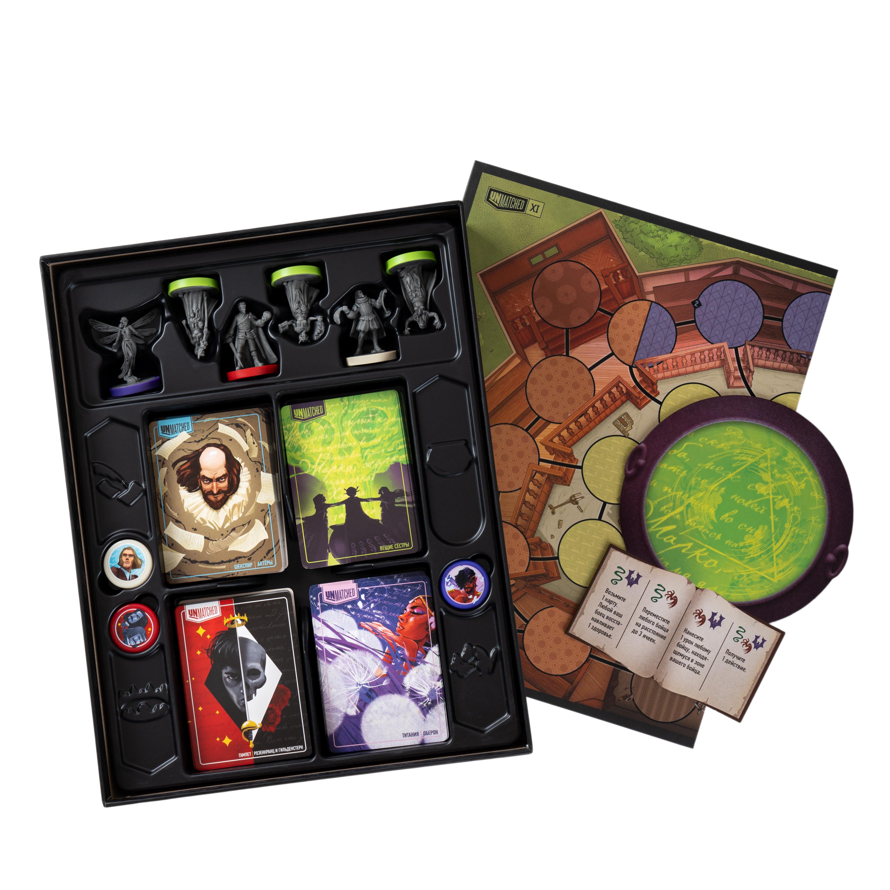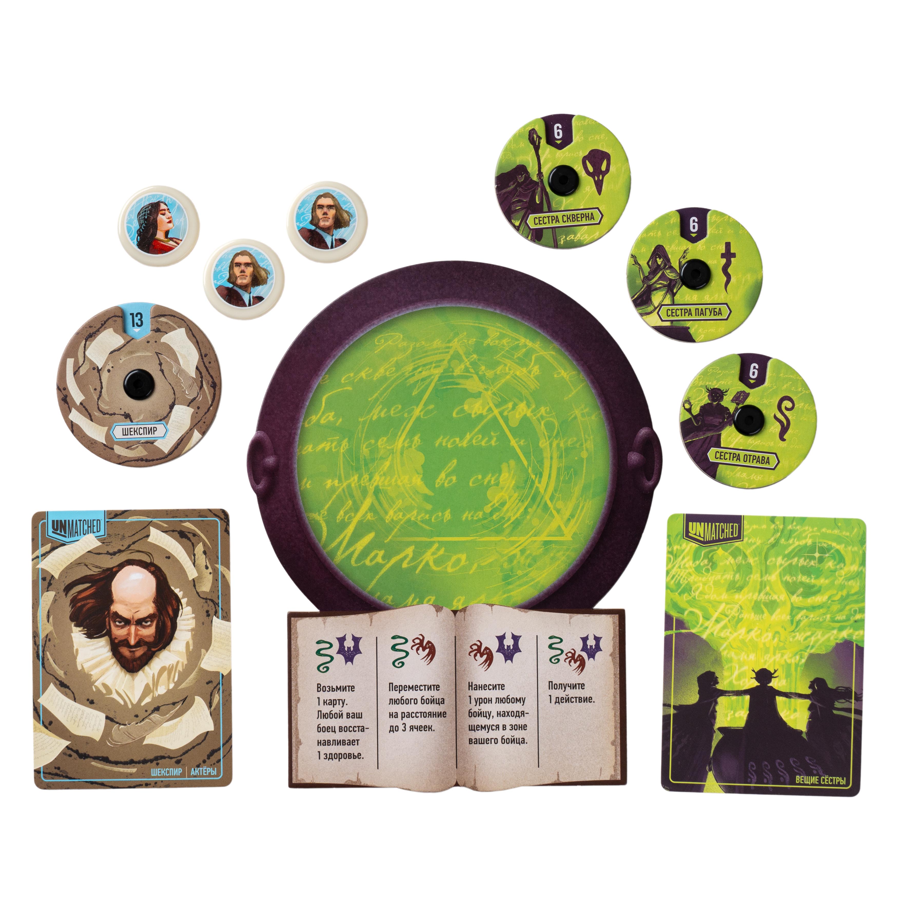Играйте отдельно или объединяйте с другими наборами Unmatched — даже соло-партия превратит ваш стол в шекспировскую сцену. Готовы ли вы бросить вызов Судьбе?