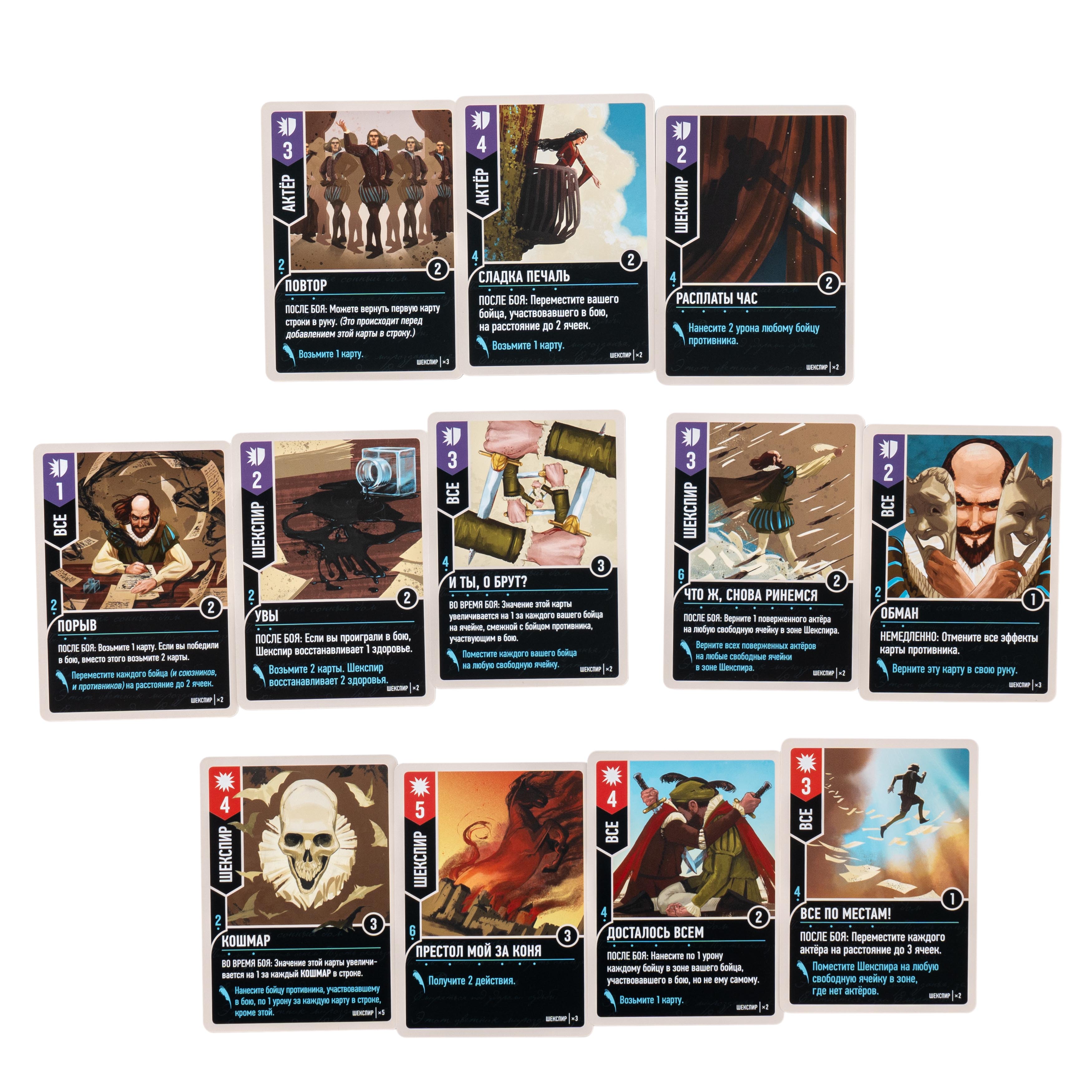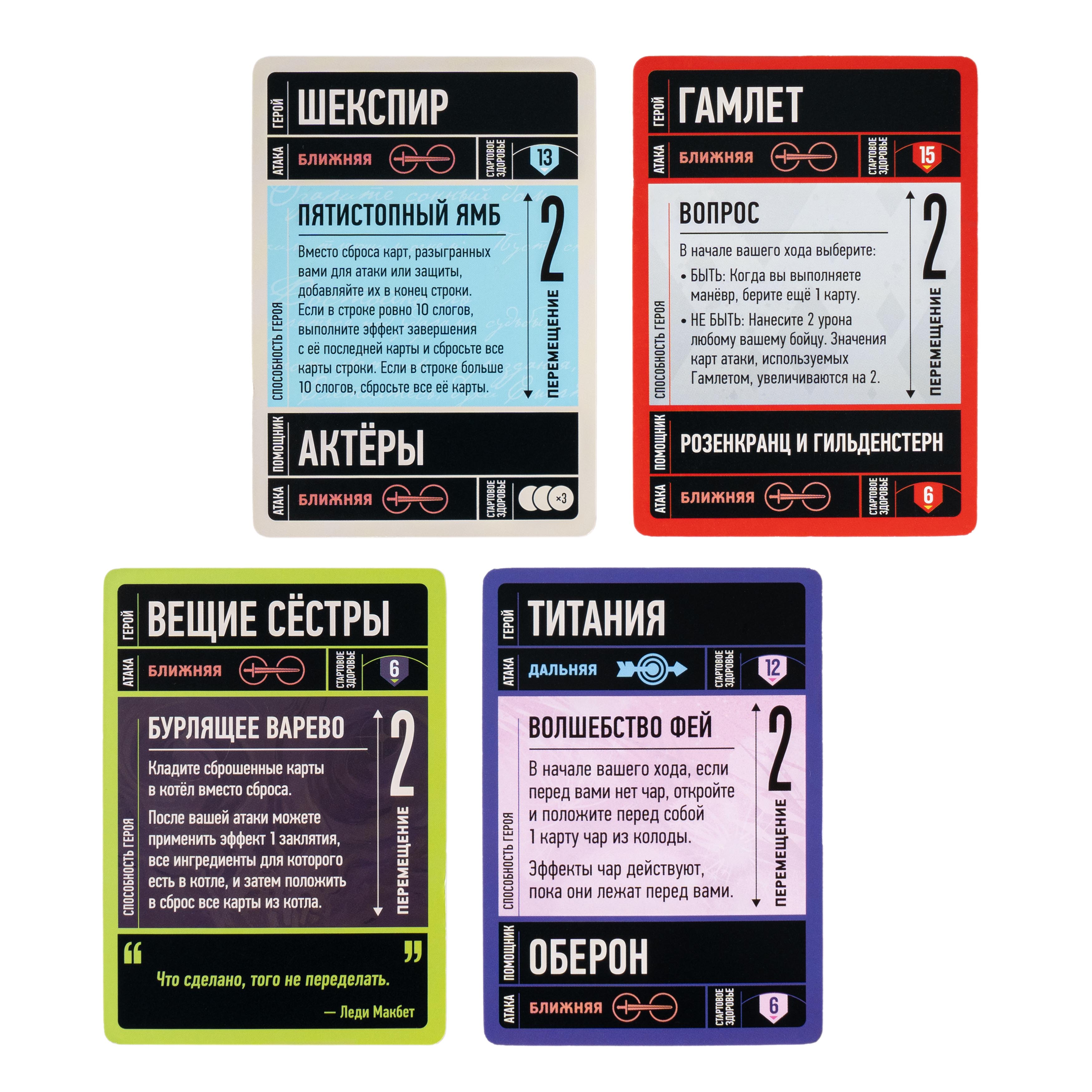 - Персонажи-легенды — управляйте Шекспиром, Гамлетом, Вещими Сёстрами и Титанией с их уникальными механиками из пьес