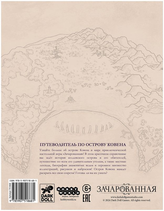 «Зачарованная: Путеводитель по острову Ковена» — официальный красочный справочник, погружающий в лор настольной игры «Зачарованная». Узнайте тайны колдовского острова: его историю как пристанища ведьм, судьбы жителей, легенды и секреты уголков, которые Рени исследует в приключениях. Книга раскрывает мир за пределами игры — от биографий знаменитых волшебниц до набросков и иллюстраций, оживая магию Ковена. Идеально для фанатов, дополняет кампанию 64 страницами деталей в мягком переплёте 215×279 мм.
