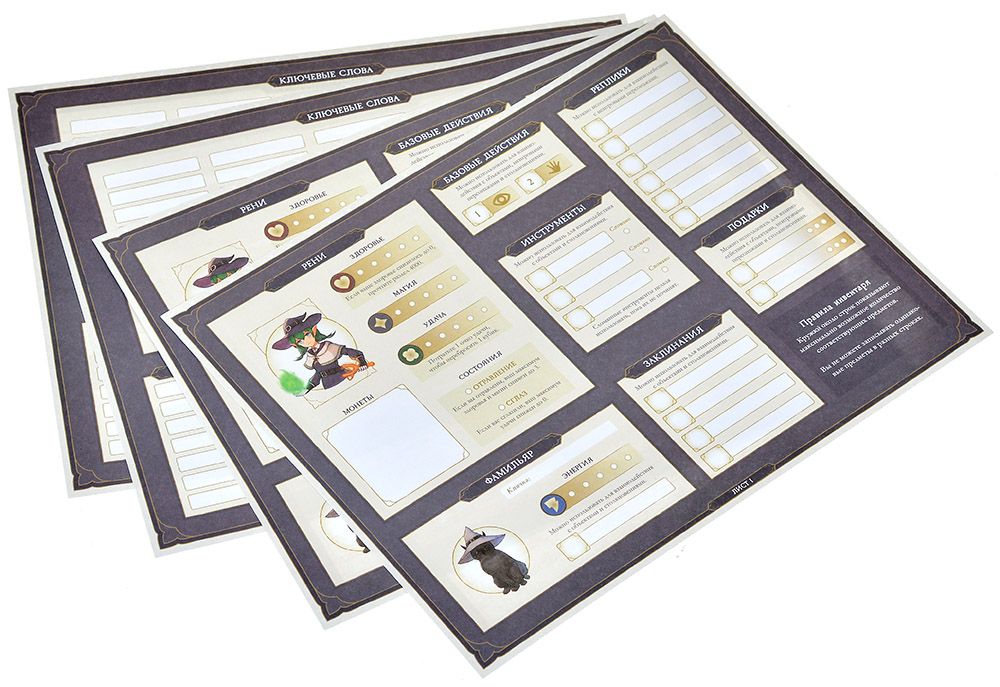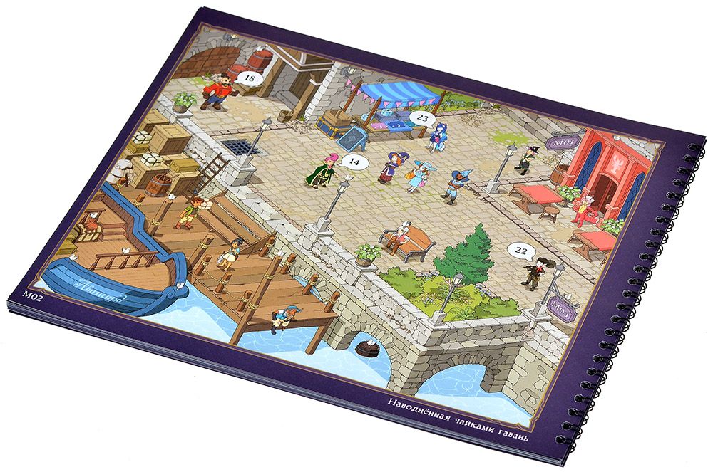 Сюжет захватывает: лето на острове оборачивается эпосом. Книга приключений ведёт через события, книга локаций раскрывает мир. Выбирайте: помогать жителям, искать артефакты или рисковать в руинах? Наклейки отмечают прогресс на 4 листах персонажа и 2 планах острова. 36 карт дают предметы и эффекты, 6 кубиков решают исходы проверок.​
