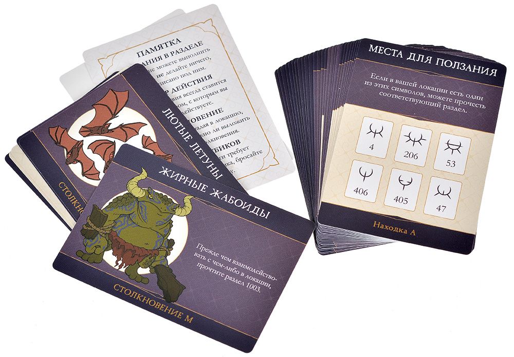 Компоненты атмосферны: книги, листы, планы, карты 63×89 мм (протекторы рекомендуются, 36 шт.), кубики. Коробка 300×300×70 мм вмещает всё. Правила с PDF, обзоры на видео.​