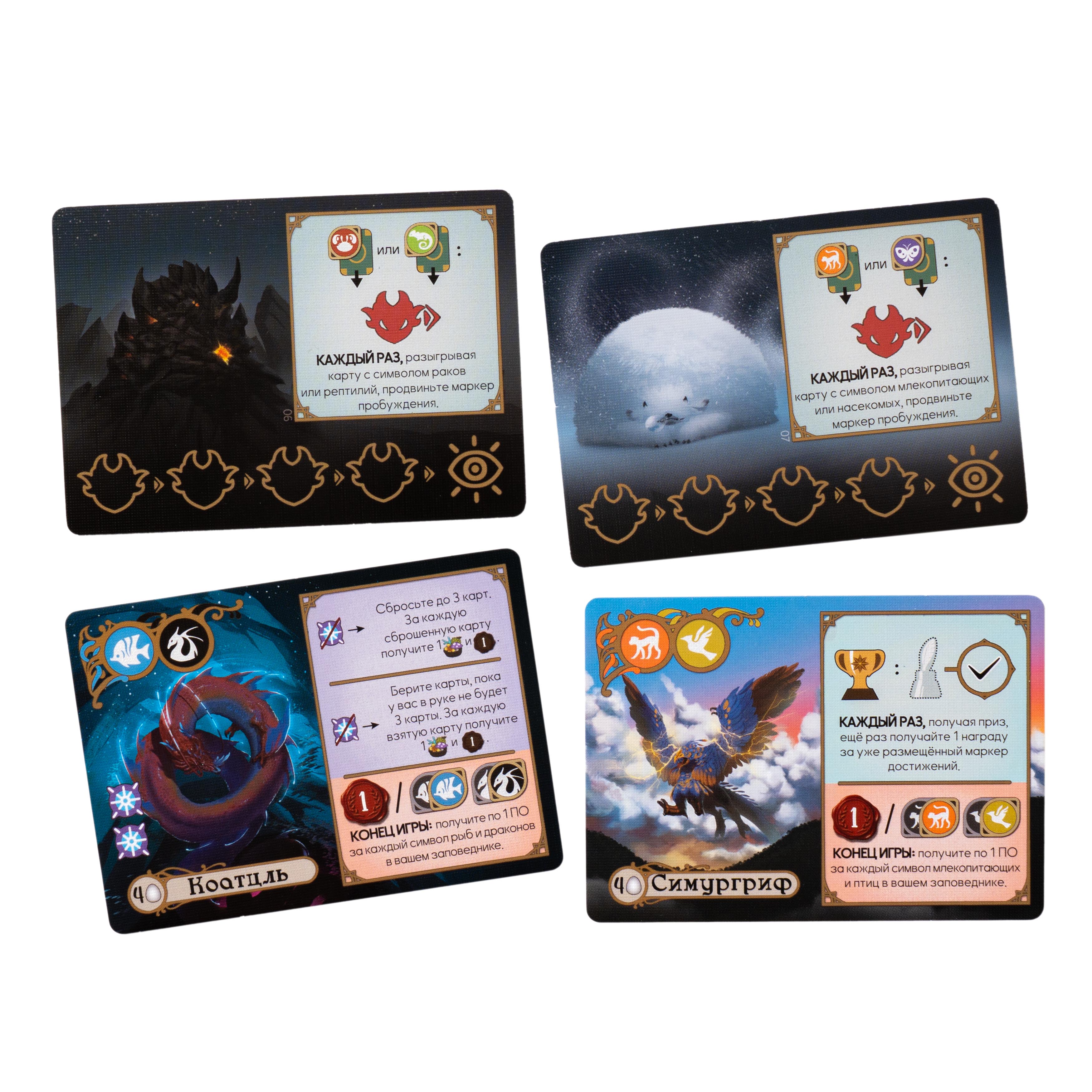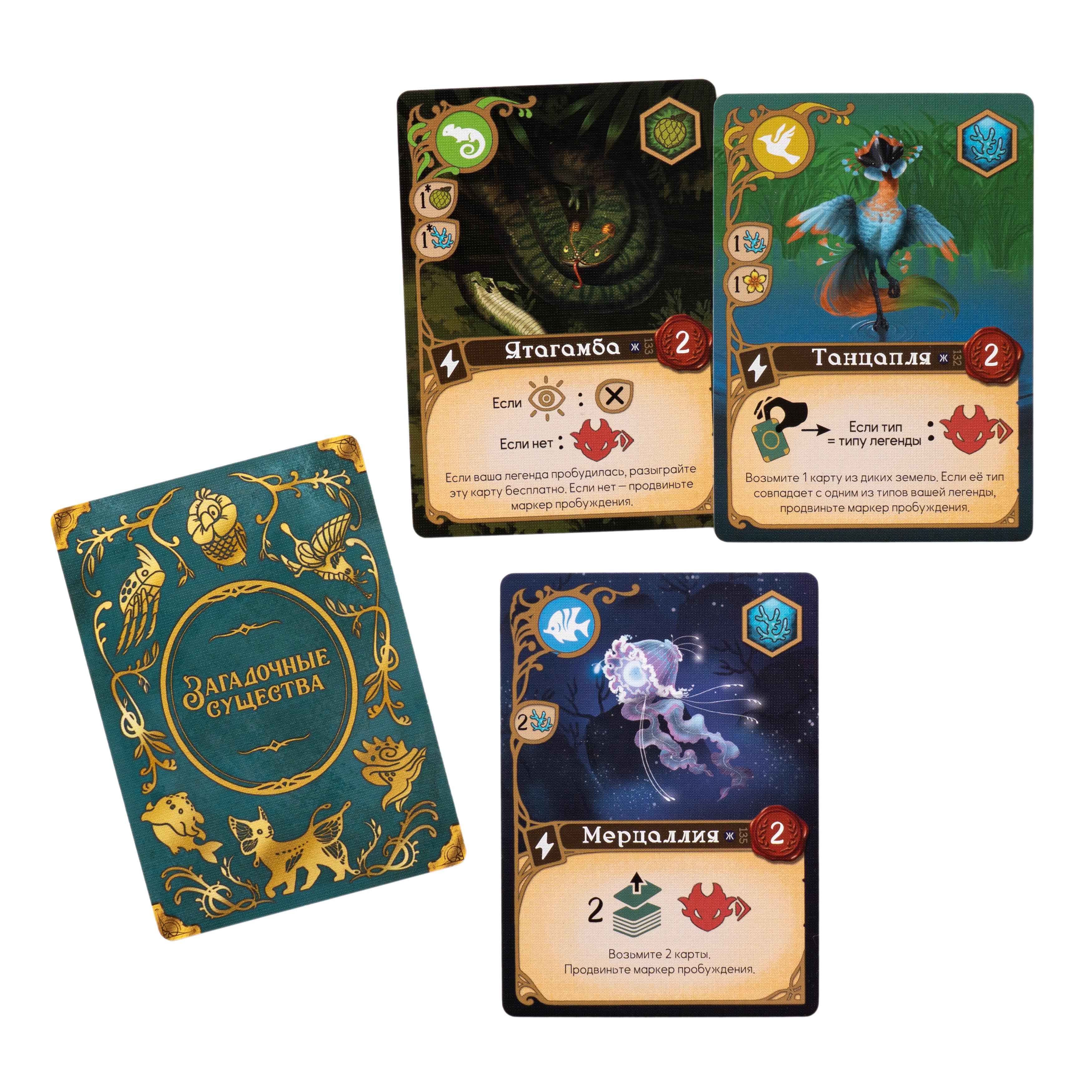 Каждая легенда предлагает уникальное преимущество: Посейдозавр приносит дополнительные победные очки за дорогих существ, Сиренида удваивает награды за яйца, а Вулхан позволяет раньше времени выполнять действия. Комбинируйте их с другими картами для создания невероятных комбинаций!