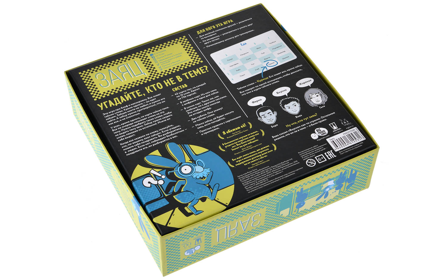 У всех, кроме одного, на карте тайная тема. Все по очереди называют слово на эту тему. Нужно подобрать такое слово, чтобы не выдать тему явно. Зайцу нужно назвать слово, похожее на остальные. Иначе он себя выдаст.
